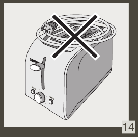 - Ärge kunagi kasutage seadet, kui juhe on rösteri peal, kuna see võib sulada. Joonis 14.