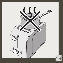 - Ülemõõdulisi toiduaineid, metallfooliumpakendeid või -nõusid ei tohi rösterisse sisestada, kuna need võivad põhjustada tulekahju või elektrilöögi ohtu.