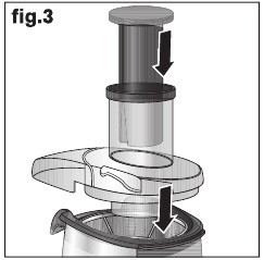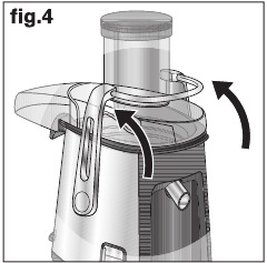 - Ärge pange sõrmi ega muid esemeid mahlapressi avasse töötamise ajal. Kui toit jääb avasse kinni, kasutage selle alla surumiseks toidu lükkurit või mõnda muud puu- või köögiviljatükki. Kui see meetod pole võimalik, lülitage mootor välja ja võtke mahlapress lahti, et eemaldada ülejäänud toit.