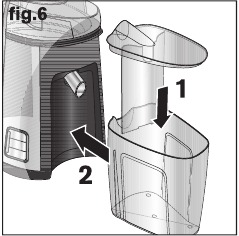 - Kui soovite mahla vahust eraldada, libistage vahueraldaja (M) mahlakonteinerisse (N) (vt joonis 6). Vahueraldaja võimaldab teil vahu kannu sees hoida, kui valate mahla klaasi.