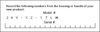 Ettevõttega ühenduse võtmisel või osade ümbertellimisel peate esitama oma toote mudeli ja seerianumbrid. Need leiate niiduki korpuse või käepideme külge kinnitatud kleebiselt. Kopeerige need numbrid allpool toodud tühjale kohale.