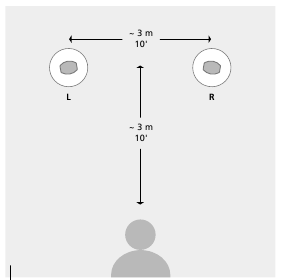 Paigutus/kuulamiskoht. Kõige loomulikuma heli ja parima stereoefekti saamiseks seadistage oma lemmik kuulamiskoht vastavalt siin näidatud juhistele.