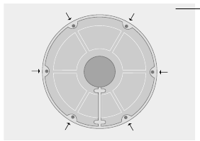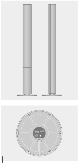 Ebatasase põrandapinna kompenseerimiseks on BeoLab 1 alusplaat varustatud kuue reguleeritava kummist jalaga (märgitud väikeste nooltega). Reguleerige vastavalt vajadusele, kuid oodake, kuni olete kõlari üles tõstnud ja paigutanud.