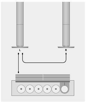 - Ühendage üks BeoLab 1 kõlar oma süsteemiga, nagu varem kirjeldatud, nt vasakpoolne kõlar.