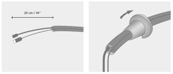 Kaabliklambrid: ohutuse tagamiseks peate kaablid ja kaablikatte kinnitama kahe klambriga, nagu näidatud.