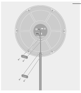 Kui BeoLab on endiselt pakendil, tõstke see alumisest otsast üles ja asetage alla täiendav tükk pakkematerjali. Kinnitage alusplaat paika. Kaablite soon peab olema suunatud allapoole (A) ja alusplaadi juhtnööp ühendub kolonni alumise osa vastava avaga. Kinnitage alus kaasasolevate kuue kruviga.