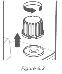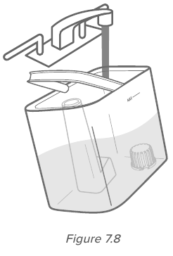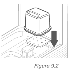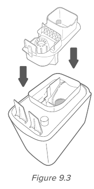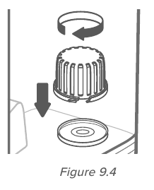 - Veenduge, et veefiltri käsn on kindlalt veefiltri sees. Asetage veefilter tagasi paaki ja keerake seda päripäeva, et see oma kohale kinnitada. [ Joonis 9.4 ]