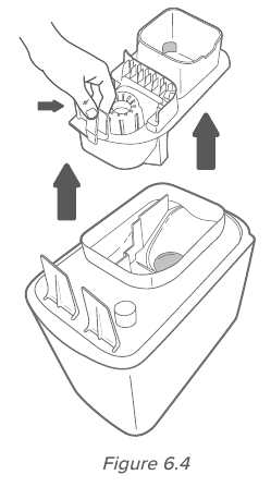 - Enne õhuniisutaja teisaldamist eemaldage veepaak aluselt.