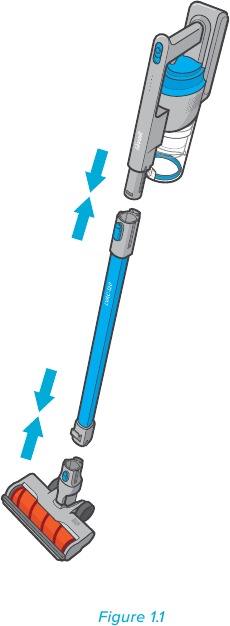 - Kinnitage imemispea varre külge ja tolmuimeja korpus ülaossa [Joonis 1.1].