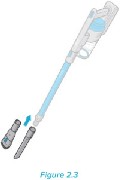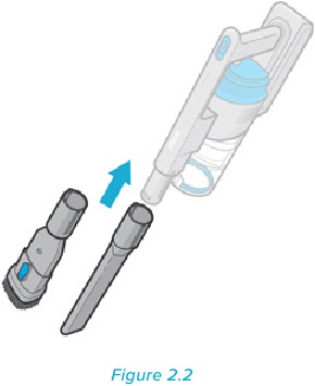 - Lükake pragude otsik või 2-in-1 harja otsik tolmuimeja korpuse külge [Joonis 2.2].