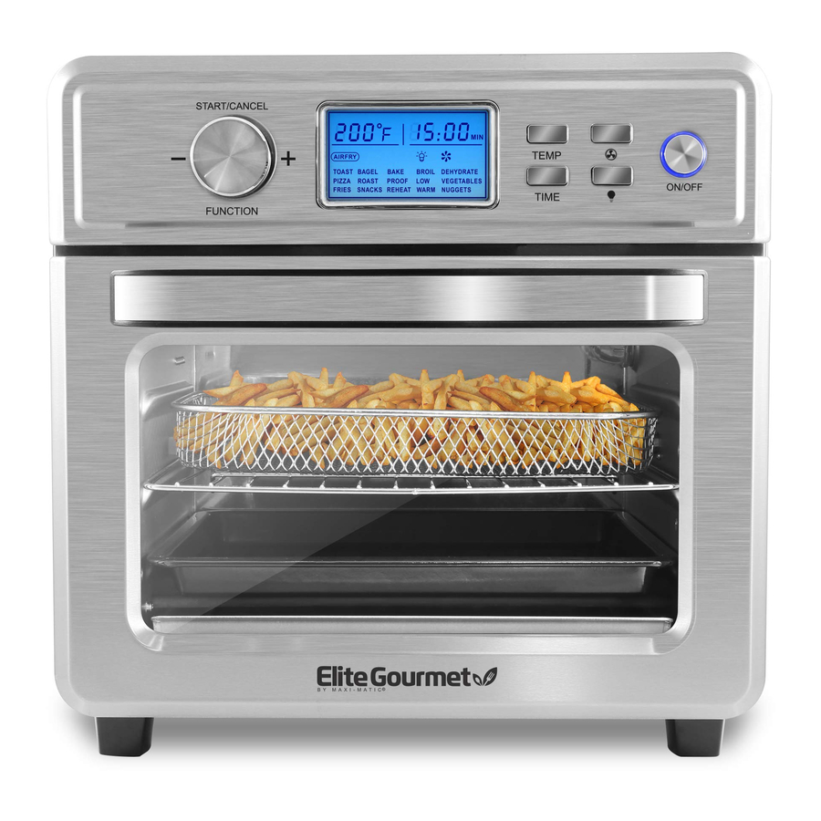 Täname, et ostsite Elite Gourmet õhufritüüri ahju. Teie uuel õhufritüüri ahjul on mitmesuguseid funktsioone, et tulla toime paljude toiduvalmistamisülesannetega. Tänu selle hõlpsasti kasutatavale digitaalsele kiirmenüüle ja temperatuuri- ja taimerikontrollile saate hõlpsalt praadida, küpsetada ja valmistada oma lemmiktoite ja suupisteid! Mis kõige parem, te valmistate süüa tervislikumalt ilma õli lisamata. Saate mitte ainult valmistada toite ilma õli tekitatava segaduseta, vaid ka küpsetada kiiremini, mis säästab teie aega ja energiat. Erinevalt enamikust tavalistest fritüüridest muudab õhufritüüri ahju ainulaadne aurusüsteem koos ringleva kuuma õhuga toidud automaatselt krõbedamaks ja loomulikult tervislikumaks ilma õlita. Loodame, et naudite oma uut Elite Gourmet õhufritüüri ahju ja alustate juba täna tervislikumat toiduvalmistamist!