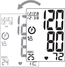 - Kui mõõtmine on lõpetatud, laseb mansett õhu välja. Süstoolne rõhk, diastoolne rõhk ja pulss kuvatakse samaaegselt LCD-ekraanil. The measurement is then automatically stored into memory. ("Seejärel salvestatakse mõõtmine automaatselt mällu.")