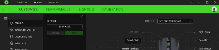 Hiiri-välilehti on Razer Cobra -laitteesi päävälilehti. Täältä voit muuttaa laitteesi asetuksia, kuten painikkeiden määrityksiä, DPI-herkkyyttä ja valaistusta. Tällä välilehdellä tehdyt muutokset tallennetaan automaattisesti järjestelmään ja pilvitallennustilaan.