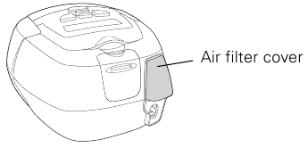 - Ilmansuodattimen kansi suojaa laitetta, jos laitteelle vahingossa läikkyy nestettä. Varmista, että ilmansuodatin ja ilmansuodattimen kansi ovat aina asennettuina.