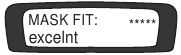 Seuraava näkyy LCD-näytössä osoittaen, että maskinsovitusominaisuus on toiminnassa, jossa: ***** on erinomainen istuvuus; ****- on erittäin hyvä istuvuus; ***-- on hyvä istuvuus; kun taas **---, *---- ja ----- vaativat kukin maskin säätämistä.