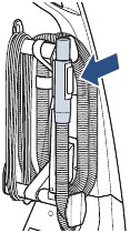 - Kierrä letku molempien letkun/johdon kääreiden ympäri. Kiinnitä se työntämällä liipaisinletkun kahva yläletkun/johdon kääreen kahvan pidikkeen aukkoon.