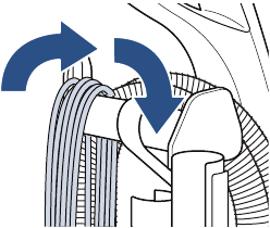 - Kierrä johto alemman ja ylemmän letkun/johdon kääreen ympäri. Kiinnitä pistoke johtoon pistokkeen klipsillä.