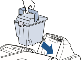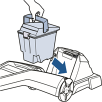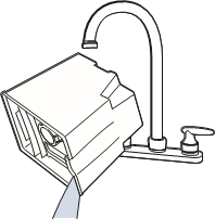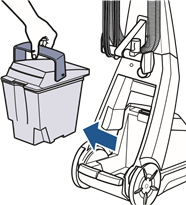 - Irrota säiliö koneesta säiliön kantokahvasta ja vie se pesualtaaseen.