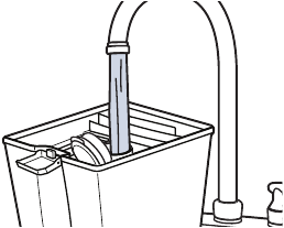 - Tyhjennä likainen vesi säiliön takakulmasta.