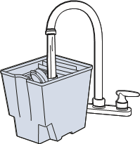 Heikentynyt suihku TAI ei suihkua | Rakko voi olla tyhjä. | Paina virtapedaali OFF (pois päältä) -asentoon; täytä rakko puhtaalla, lämpimällä (enintään 60 °C) vesijohtovedellä ja pesuaineella. | |