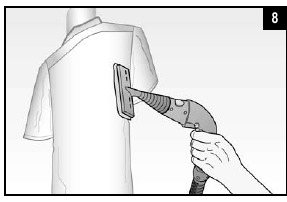 Harjaa voidaan käyttää myös kankaiden raikastamiseen poistamalla kaikki rypyt. Joka tapauksessa suosittelemme, että kun käytät laitetta ensimmäistä kertaa ja normaalin käytön aikana, johdat höyrystä tiivistyneen veden astiaan, jotta kankaat eivät kastu (