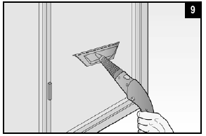 - Älä koskaan käytä ikkunanpesuharjaa, jos puhdistettava pinta on kylmä; lämpöliike voi aiheuttaa pinnan rikkoutumisen. Kylminä vuodenaikoina, jolloin lämpötila on erityisen alhainen, esilämmitä lasi höyrysuihkuilla kauttaaltaan noin 40 cm:n etäisyydeltä.