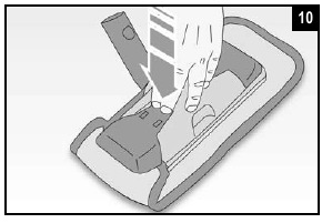- Aseta pistooli (H) takaisin erityiseen kahvaan (B) sen jälkeen, kun olet asettanut liukusäätimen (I) lukittuun asentoon.