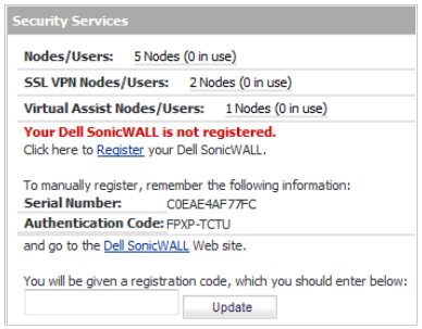 - Napsauta Register (Rekisteröi) -kohtaa kohdassa System (Järjestelmä) > Status (Tila) -sivu Security Services (Suojauspalvelut) -kohdassa.