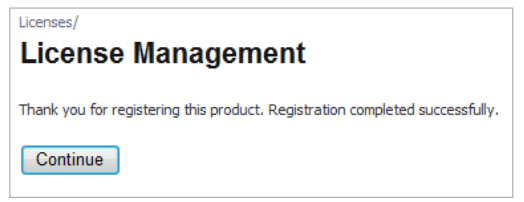 - MySonicWALL saa suoraan tarvittavat tiedot TZ-laitteesta. Kun olet valmis, näet viestin, että rekisteröinti on valmis. Napsauta Continue (Jatka).