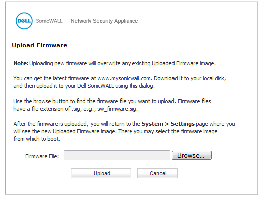 - Siirry TZ-laitteessa System (Järjestelmä) > Settings (Asetukset) -sivulle. Napsauta Upload New Firmware (Lataa uusi laiteohjelmisto) -painiketta.