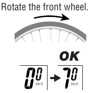 Pyöritä etupyörää varovasti ja katso, näyttääkö tietokone ajonopeuden.