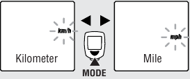 Valitse mittayksikkö, kilometri tai maili, painamalla MODE-painiketta.