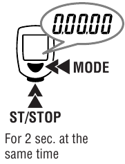 Matkan pituus 2 nollataan itsenäisesti. Kun Matkan pituus 2 on näytöllä, paina ja pidä sekä MODE- että START/STOP (aloita/lopeta) -painikkeita painettuna nollataksesi sen.