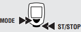 Paina ja pidä MODE- ja START/STOP (aloita/lopeta) -painikkeita painettuna 2 sekuntia joko Kulunut aika, Matkan pituus 1, Keskinopeus tai Maksiminopeus -toiminnoissa nollataksesi nämä toiminnot. Matkamittaria ja Matkan pituus 2 ei nollata. Katso lisätietoja alta.