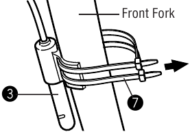 Kiinnitä johto etuhaarukkaan nylon-siteillä (pienemmillä)