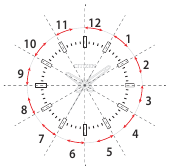 "Kuukausi" vastaa yhtä alla olevassa kuvassa esitetyistä 12 vyöhykkeestä. Jokainen numero tarkoittaa kuukautta.