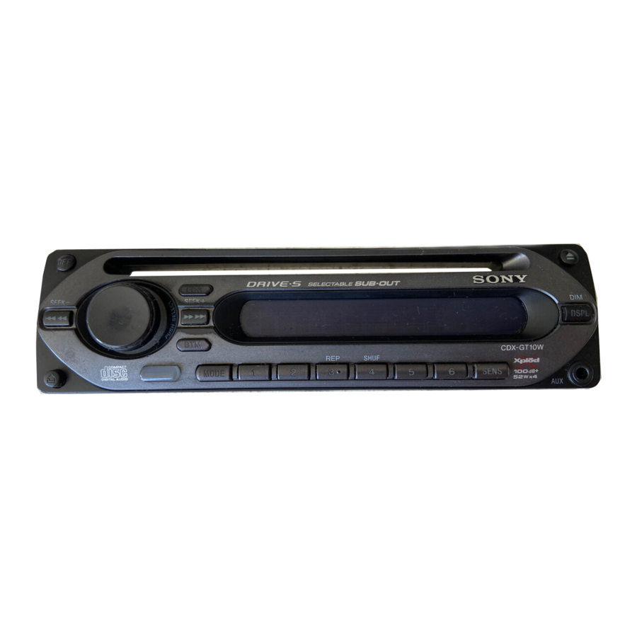 Sony CDX-GT20W, CDX-GT10W - FM/AM Compact Disc Player Asennus-/liitäntäopas