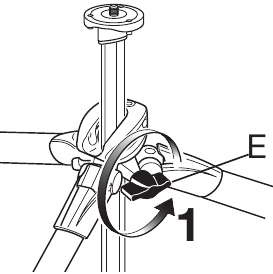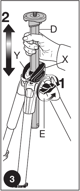 - avaa nuppi "E" ja vedä keskiputki "D" kokonaan ulos kuvan mukaisesti