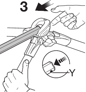 - paina painiketta "Y" ja samanaikaisesti nosta keskiputki "D" kokonaan ylös kuvan mukaisesti