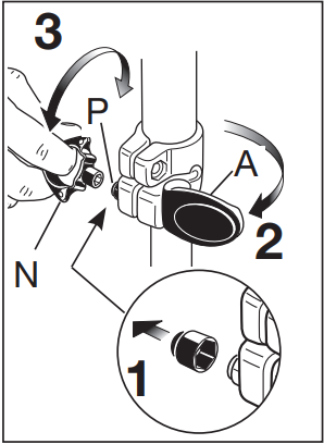 - kierrä ruuvia "P" myötäpäivään käyttämällä mukana toimitettua erikoisavainta "N" yhdellä jalustan jaloista.