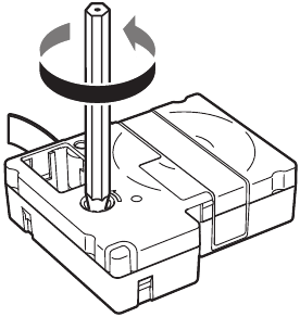 - Aseta teippikasetti paikalleen ja paina sitä tiukasti, kunnes se napsahtaa paikalleen. Jos teippiä on liikaa, syötä teipin pää teippiohjaimen aukon läpi.