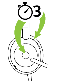 ![]() | Nollaa pariliitosluettelo ja asetukset | Varmista, että kuulokemikrofoni on päällä ja et ole puhelussa. Paina sitten ja pidä (3 sekuntia) Puhelu-painiketta (Call button) ja Äänenvoimakkuus ylös -painiketta (Volume up button) samanaikaisesti, kunnes LED-valo syttyy vaaleanpunaisena ja kuulet ilmoituksen kuulokemikrofonissa |
