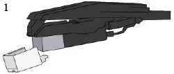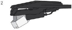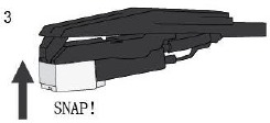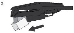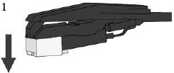 - Työnnä neula sisään siten, että sen etupää on alaspäin suuntautuvassa kulmassa, ja nosta neulan etuosaa varovasti ylöspäin, kunnes se napsahtaa paikalleen.