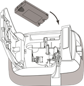 - Aseta akku akkukoteloon kuvan mukaisesti.