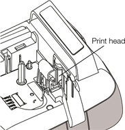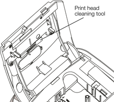 - Irrota tulostuspään puhdistustyökalu tarralokeron kannen sisäpuolelta.
