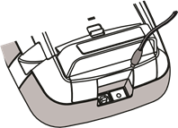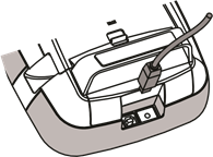 - Liitä lataussovitin tarratulostimen yläosassa olevaan virtaliittimeen.