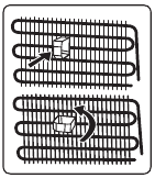 - Asenna kaksi muovista etäisyysohjainta (osat mustissa siivissä -lauhdutin- takana) kääntämällä niitä 90° (kuten kuvassa on esitetty), jotta lauhdutin ei kosketa seinää.