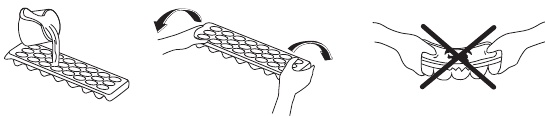 - Kun vesi on jäätynyt kokonaan, voit kiertää astiaa alla olevan kuvan mukaisesti poistaaksesi jääpalat.