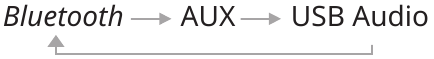 ![]() Sykkivä sininen | Bluetooth -tulolähde, ei laitetta pariliitetty / yhdistetään uudelleen aiemmin pariliitettyyn laitteeseen |