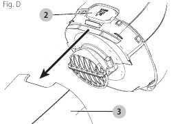 - Paina säiliön vapautuspainiketta 2 ja vedä pölysäiliö 3 suoraan irti kuvassa D esitetyllä tavalla.